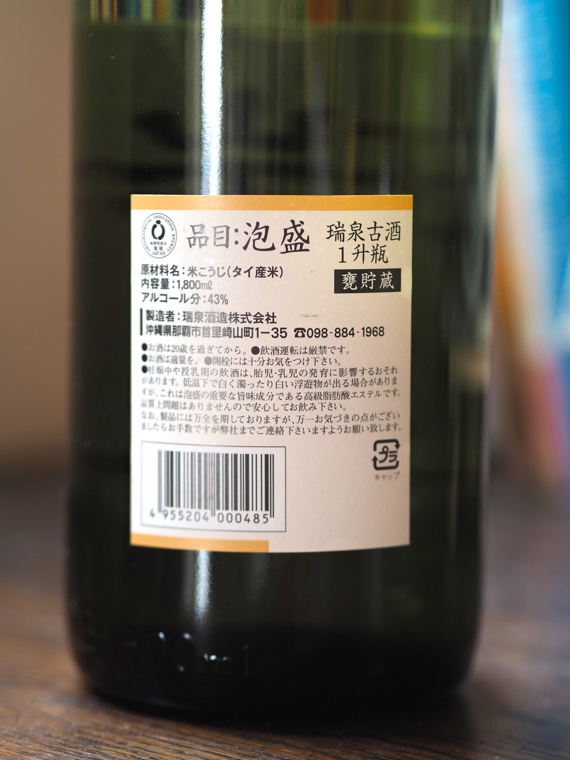 甕貯蔵 熟成古酒 瑞泉 1.8L
